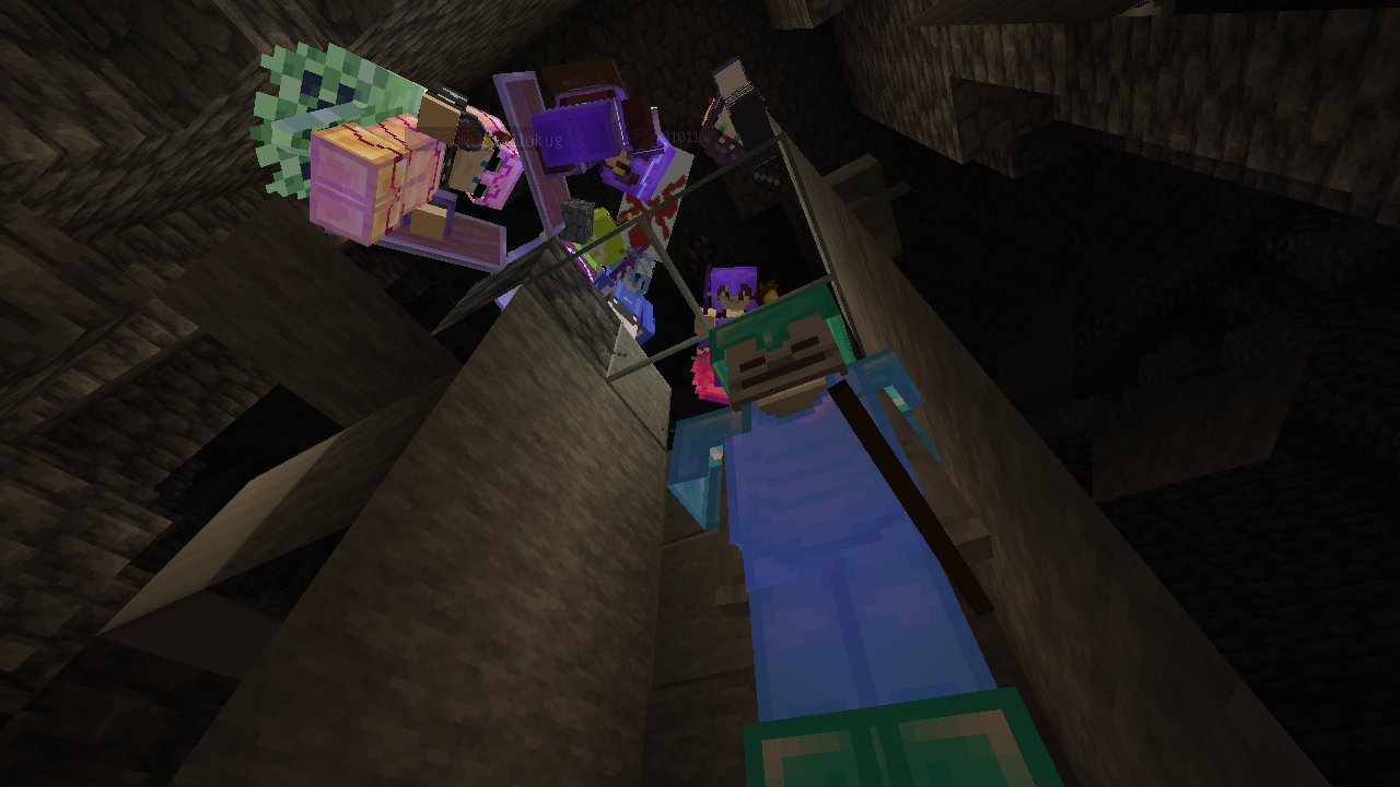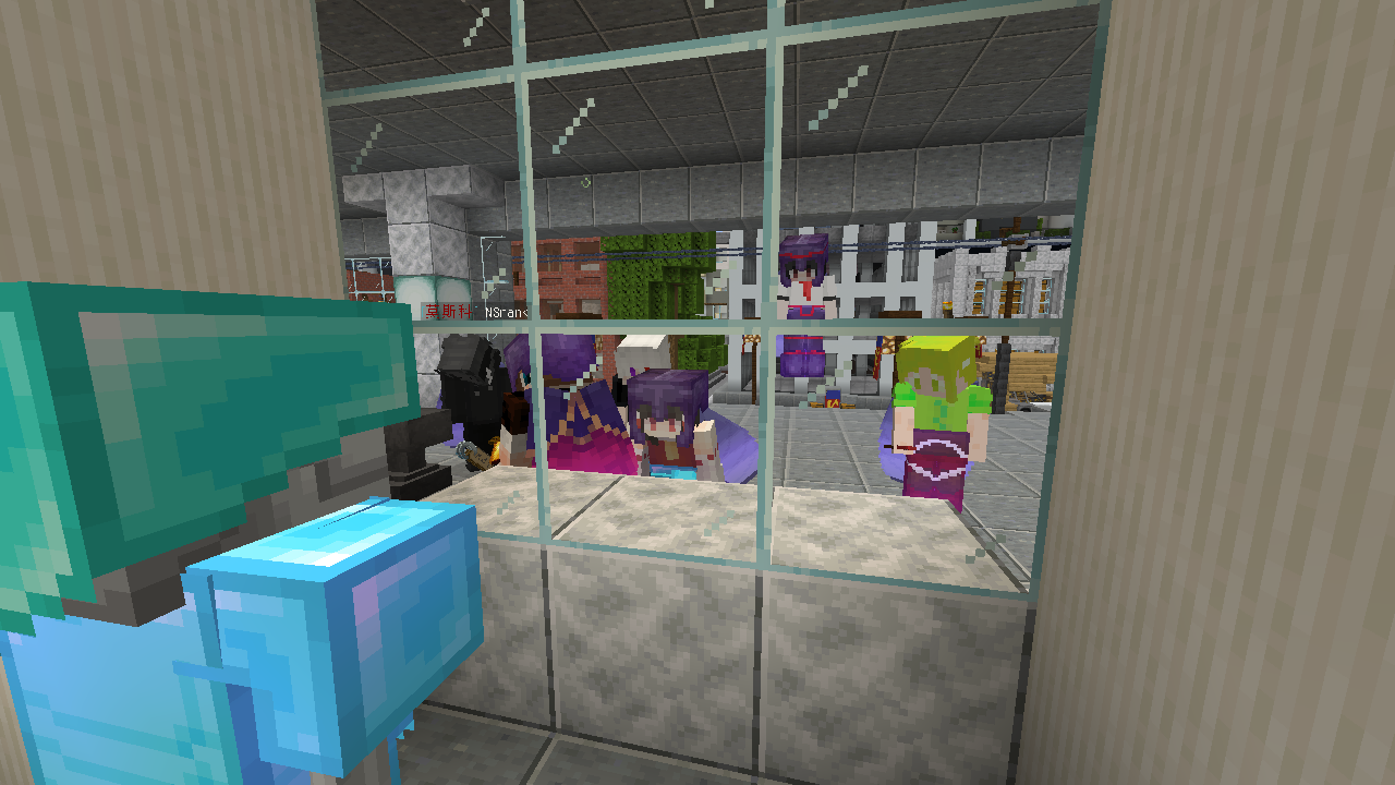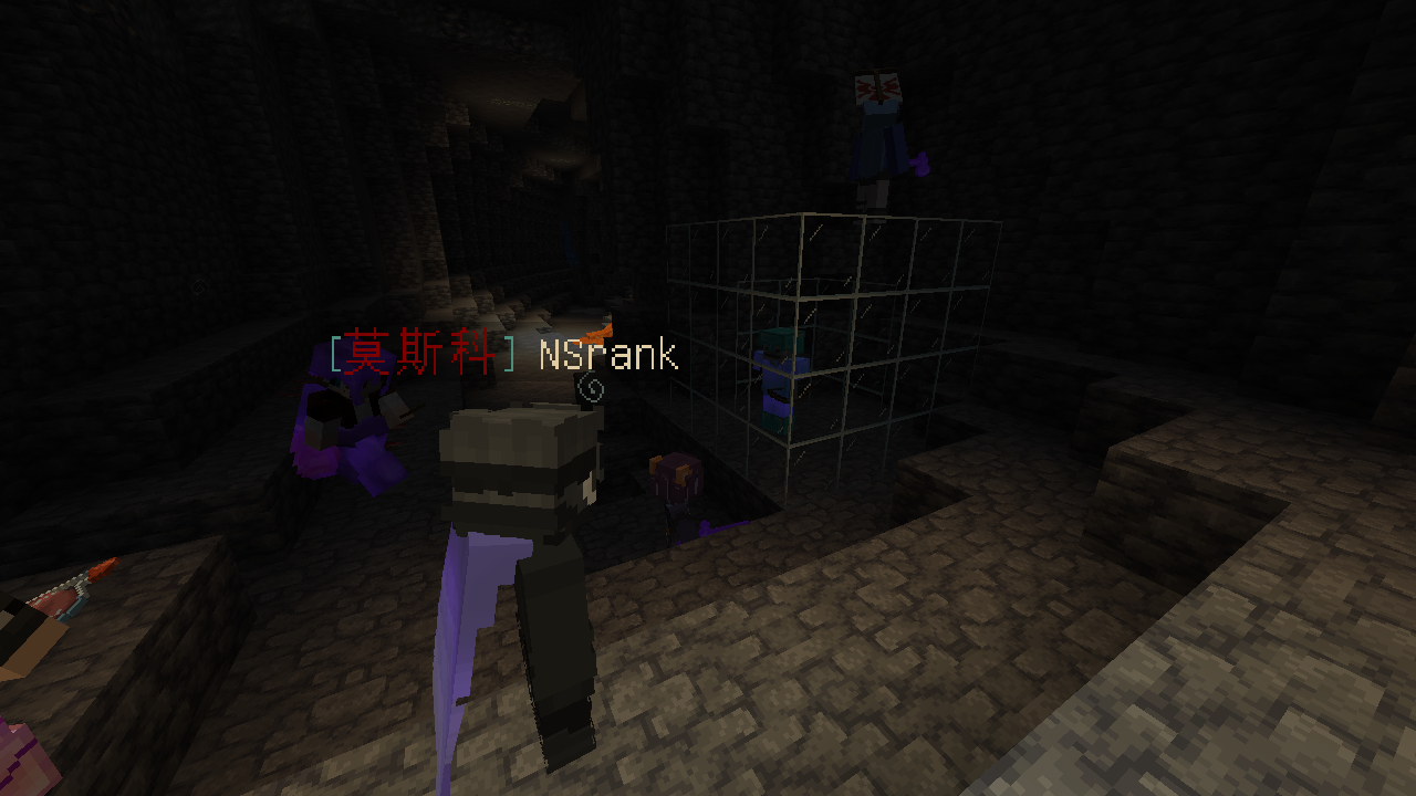 因为主世界末地坏了,一进去就会传到大教堂;而资源世界的末地连的是主世界末地。因此先前我和一些人提出:可不可以把这只骷髅通过末地运到主世界?最终没人这么干,因为大家不知道在资源世界进入末地到底会发生什么。后来待 NS 放好到火车站以后, tasty_fan_he 把我传到他那,是资源世界,在末地要塞里,眼前有个末地门。我俩跳了进去,果然到了大教堂。然后我提议:再扔进去个东西试试。他说,回不去了,不想实验了。